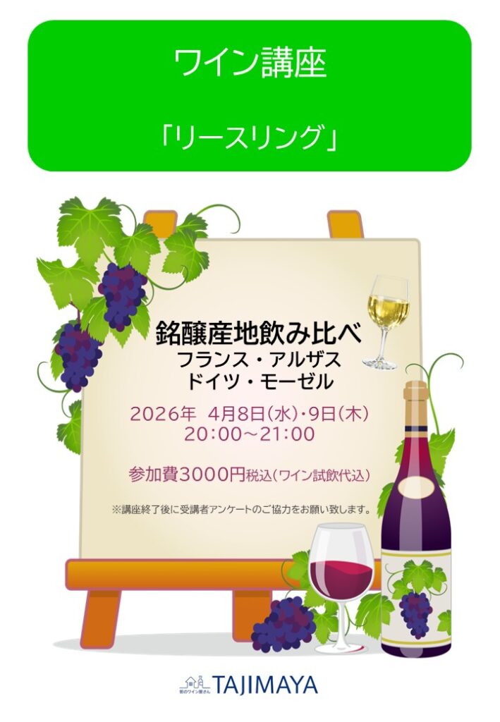 ~ワイン試飲に際してのお願い~※自転車の飲酒運転取り締まりが厳しくなりました。当店では自転車でご来店のお客様のワイン講座参加を固くお断りしています。ご協力をお願い致します。